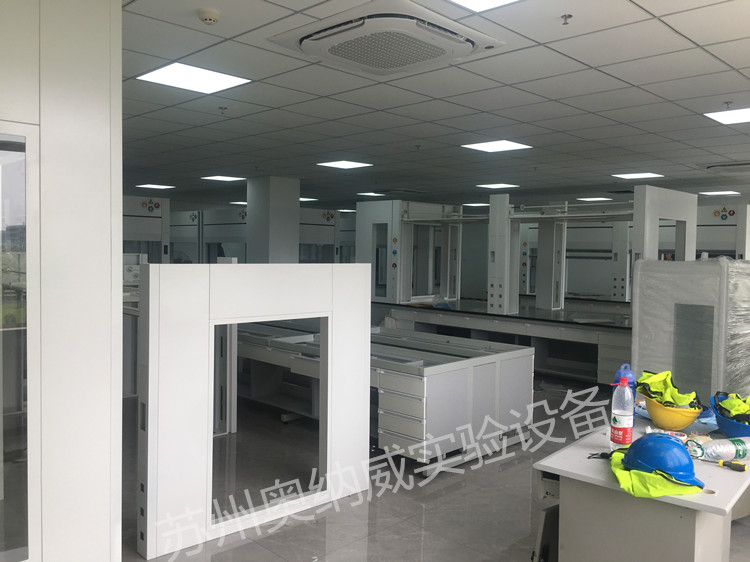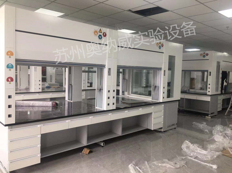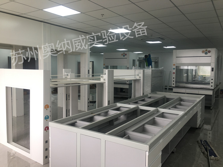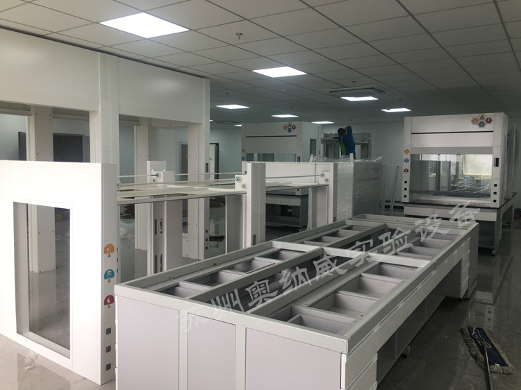 這邊是是半成品拼裝實驗臺和通風柜,鋼木實驗臺,全鋼通風柜,按照客戶選項的顏色定制成品。