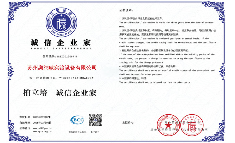 誠信建設(shè)萬里行——奧納威3A誠信認證完成
